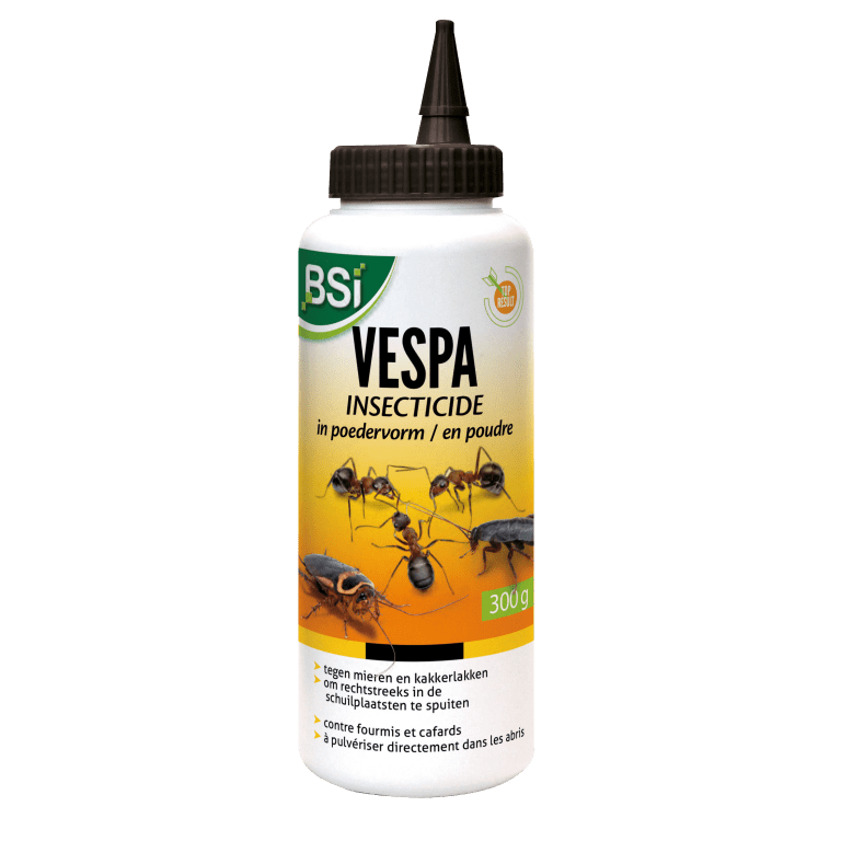 Last van kakkerlakken en/of mieren? Wijs de ongewenste huisgenoten de deur met de BSI Vespa insecticide. Het gebruiksklaar poeder strooi je rechtstreeks in de schuilplaatsen van de kruipende insecten of op plaatsen waar ze vaak komen, in en rond gebouwen. Hun koffers zullen snel genomen zijn van zodra ze in contact komen met het poeder dankzij de krachtige en onmiddellijke werking van de aanwezige stof cypermethrine.