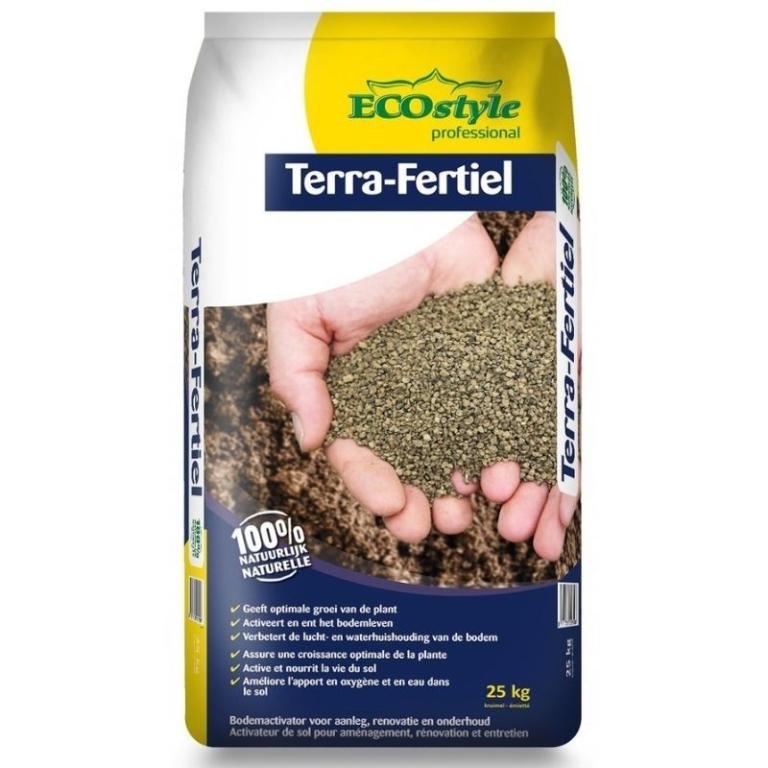 Terra-Fertiel bestaat uit een combinatie van organische stof, kalk, zeewierextracten en kleimineralen waarop diverse natuureigen schimmels, bacteriën en gisten zijn geënt.